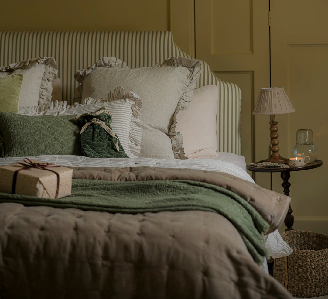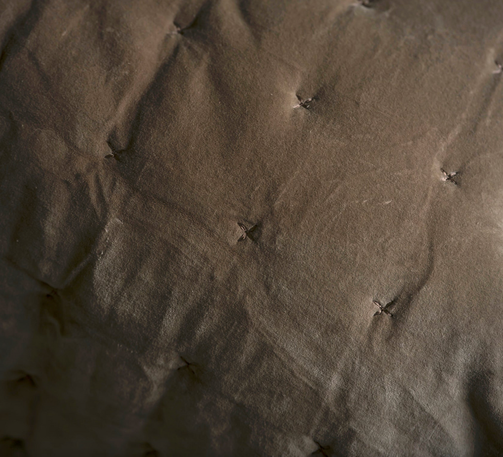 Indian Cotton & Velvet Bedspread with Pinstripe Reverse - Taupe