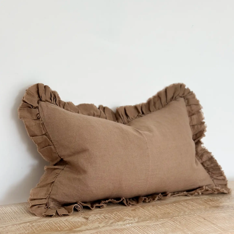 Ellenvale - Ruffled Linen Cushion Cover - Light Brown