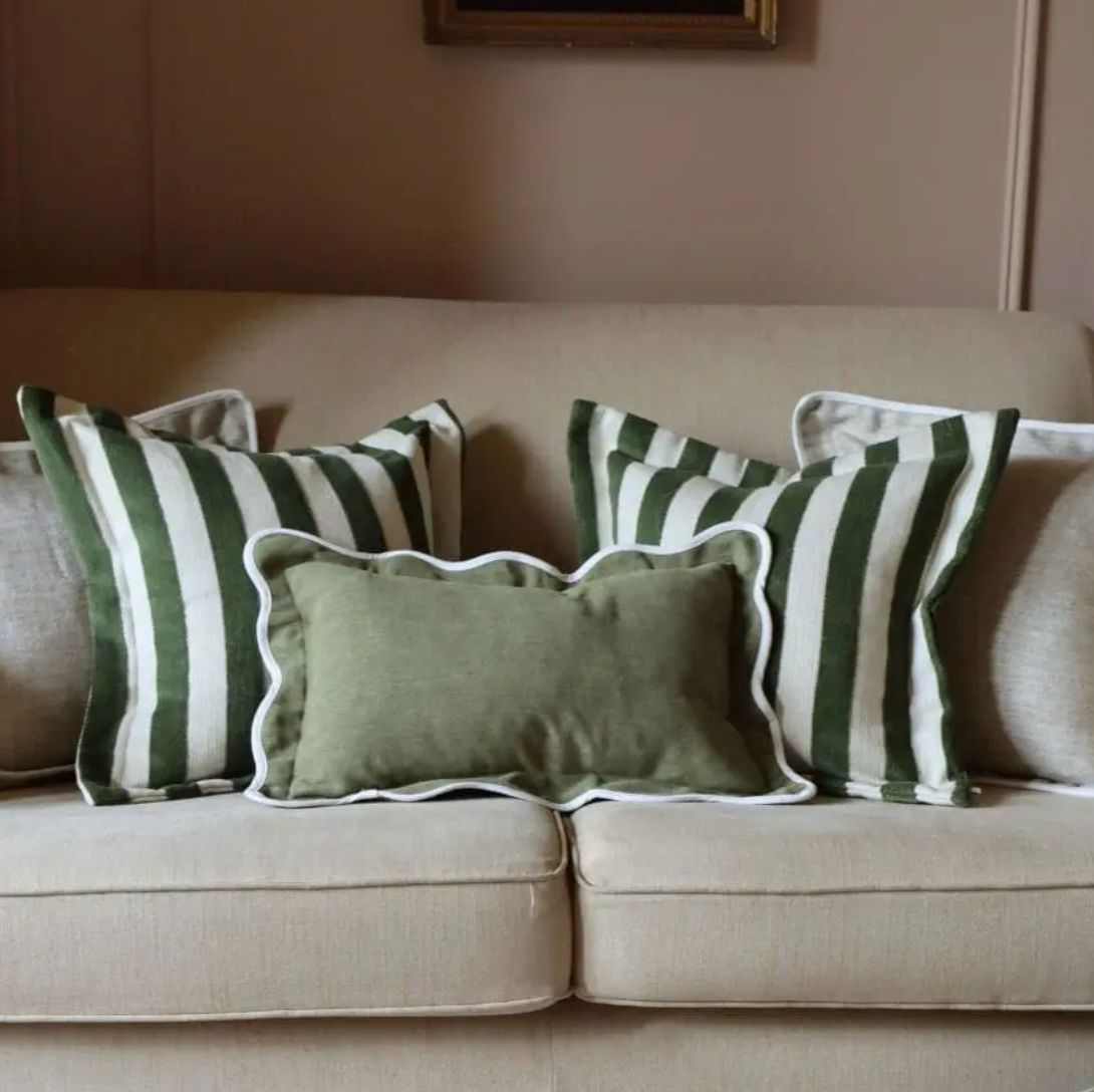 Bring a touch of understated elegance to your home with this handpicked olive green stripe cushion. Crafted from soft, high-quality cotton blend fabric, it adds texture and comfort to sofas, armchairs, or beds. The subtle striped design in earthy olive tones complements both modern and traditional interiors, making it perfect for layering with other cushions or adding a pop of colour to a neutral palette. Versatile and stylish, this cushion is a curated accent that enhances the warmth and character of any living space.