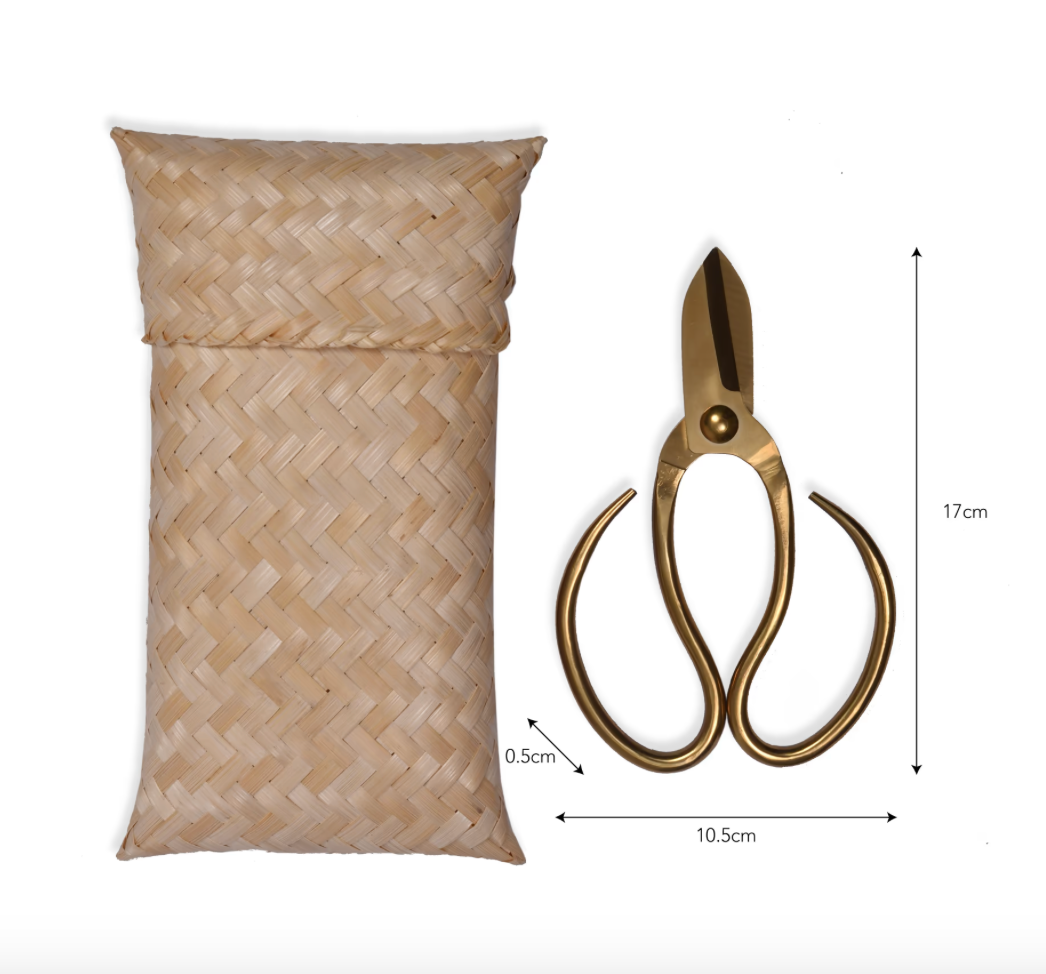 When fresh flowers need pruning or a beautiful bouquet needs arranging, these Garden Scissors are the perfect companion. The distinctive oversized looped handles take their inspiration from Japanese bonsai scissors, perfect for precise cutting. Crafted from Stainless Steel with a polished Brass finish they come complete in a handwoven Bamboo bag, making the perfect gift.