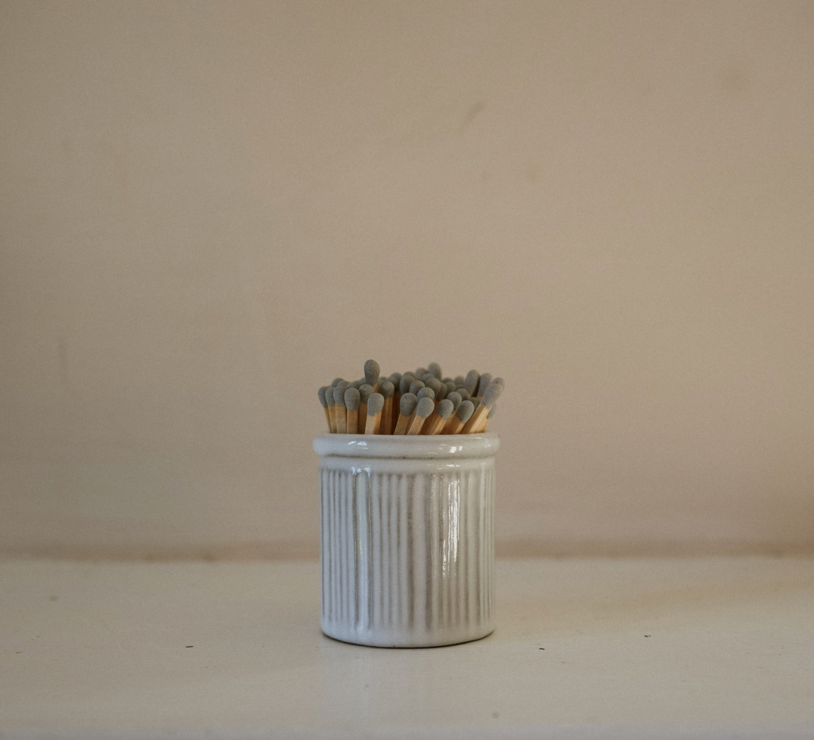Finished in a soft neutral glaze with delicate ribbed detailing, this marmalade jar match striker brings a subtle vintage touch while keeping everyday essentials close at hand. A thoughtful and decorative addition to any curated home.